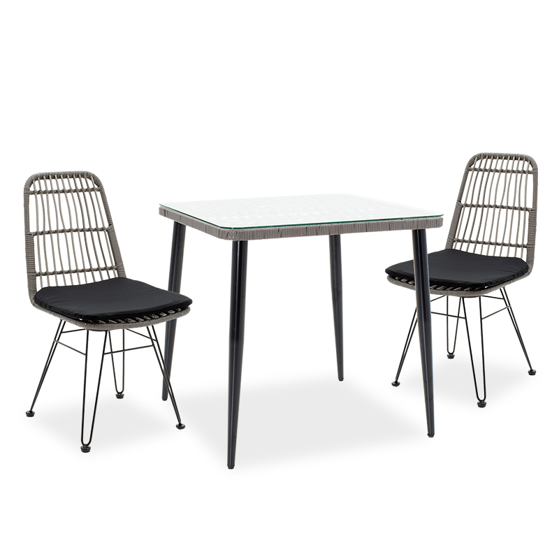 Τραπεζαρία κήπου Naoki σετ 3τεμ pakoworld γκρι pe-μέταλλο μαύρο