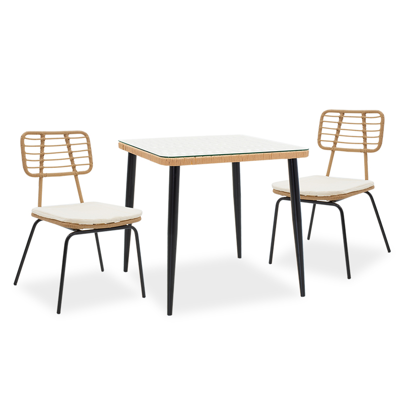 Τραπεζαρία κήπου Naoki σετ 3τεμ pakoworld μαύρο μέταλλο-pe φυσικό
