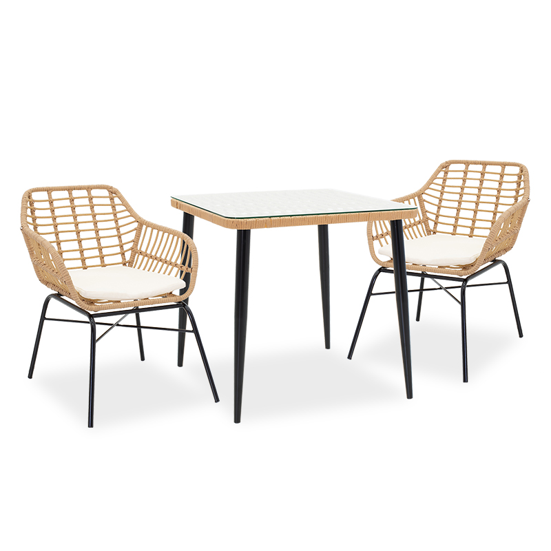 Τραπεζαρία κήπου Naoki σετ 3τεμ pakoworld μέταλλο μαύρο-pe φυσικό