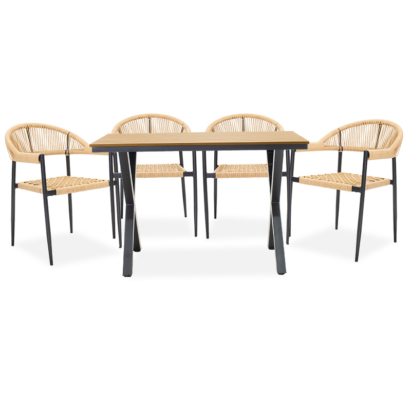 Τραπεζαρία κήπου Tiana σετ 5τεμ pakoworld μέταλλο μαύρο-pe φυσικό