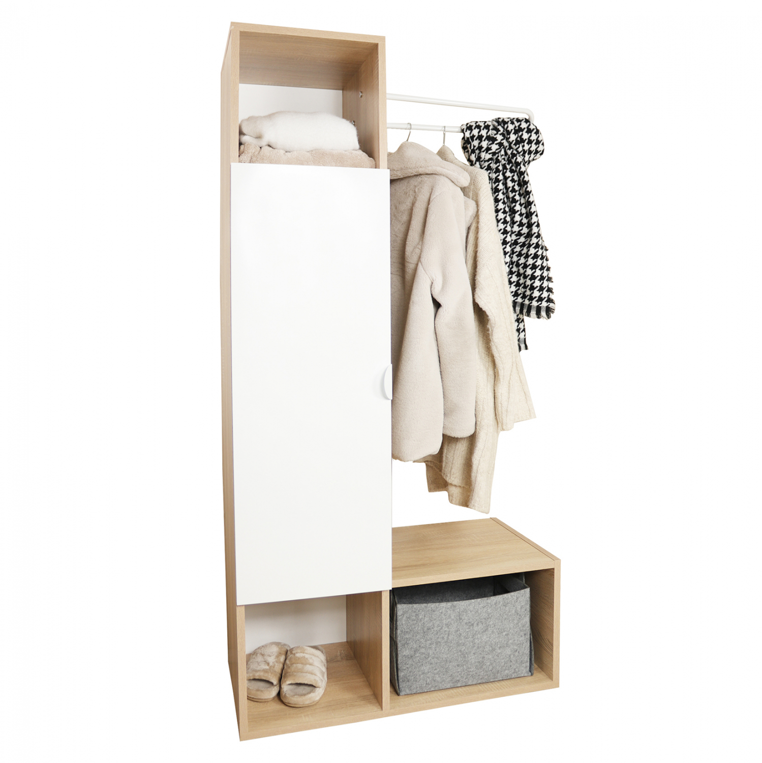 Μοντέρνο έπιπλο εισόδου σε λευκή και sonama απόχρωση. Είναι κατασκευασμένο από μελαμίνη υψηλής ποιότητας και μέταλλο. Διαθέτει ένα ντουλάπι, τρεις ανοιχτούς αποθηκευτικούς χώρους και μεταλλική βάση για κρέμαση ρούχων. Σε ένα μοναδικό συνδυασμό χρωμάτων, θα δώσει μια ευχάριστη νότα στον χώρο σας. Δημιουργήσετε έναν καλά οργανωμένο και τακτοποιημένο χώρο στην είσοδο του σπιτιού σας. Τα έπιπλα εισόδου καταλαμβάνουν λιγότερο χώρο και αποτελούν μία πρακτική πρόταση διακόσμησης για τον χώρο υποδοχής του σπιτιού σας. Απόχρωση: Sonama - Λευκό Διαστάσεις: 82x36x165Υ εκ. Ευρωπαϊκής κατασκευής και προέλευσης. Το προϊόν διατίθεται αμοντάριστο σε εργοστασιακή συσκευασία.