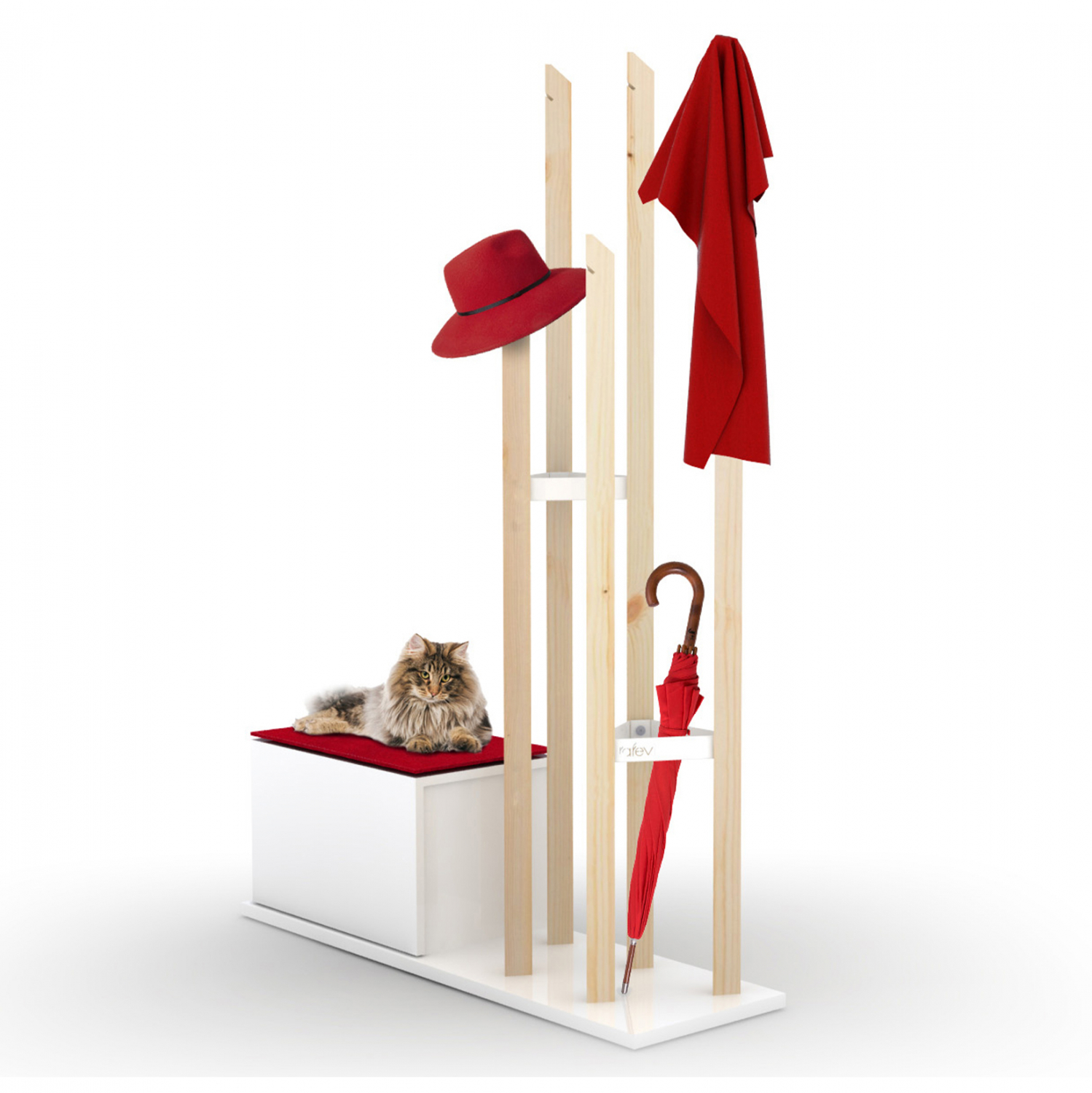 Μοντέρνο έπιπλο εισόδου σε λευκή και φυσική απόχρωση με κόκκινο μαξιλάρι. Κατασκευασμένο από μελαμίνη υψηλών προδιαγραφών. Διαθέτει κρεμάστρα με πέντε θέσεις για να κρεμάσετε τα ρούχα σας και κάθισμα με ένα μικρό ντουλάπι παπουτσοθήκη. Σε ένα μοναδικό συνδυασμό χρωμάτων, θα δώσει μια ευχάριστη νότα στον χώρο σας. Δημιουργήσετε έναν καλά οργανωμένο και τακτοποιημένο χώρο στην είσοδο του σπιτιού σας. Τα έπιπλα εισόδου καταλαμβάνουν λιγότερο χώρο και αποτελούν μία πρακτική πρόταση διακόσμησης για τον χώρο υποδοχής του σπιτιού σας. Απόχρωση: Λευκό, Φυσικό, Κόκκινο Διαστάσεις κρεμάστρας: 120x36x168Y εκ. Ευρωπαϊκής κατασκευής και προέλευσης. Το προϊόν διατίθεται αμοντάριστο σε εργοστασιακή συσκευασία.