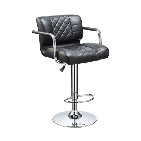 BAR/83 σκαμπό εσωτερικού χώρου με μπράτσα σε μοντέρνα γραμμή. Κάθισμα, πλάτη και μπράτσα ενδεδυμένα από PU χρώματος μαύρο και βάση χρωμίου με υποπόδιο για την καλύτερη στήριξη των ποδιών. Διαθέτει αμορτισέρ για ρύθμιση ύψους.