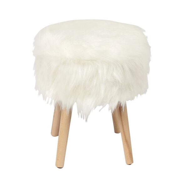 JAMO Αποθηκευτικό Σκαμπό Βοηθητικό, Συνθετική Γούνα Άσπρο, Πόδια Φυσικό.-Ε7033,1-Ξύλο/Ύφασμα-1τμχ- 38x38x47cm