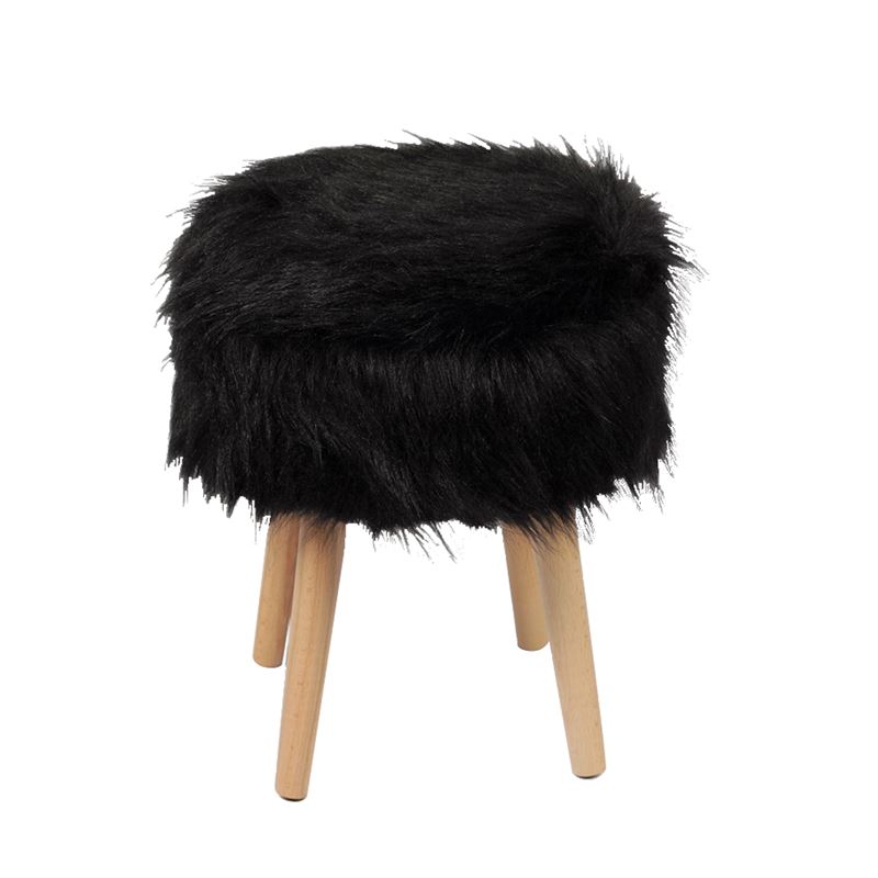 JAMO Αποθηκευτικό Σκαμπό Βοηθητικό, Συνθετική Γούνα Μαύρο, Πόδια Φυσικό.-Ε7033,2-Ξύλο/Ύφασμα-1τμχ- 38x38x47cm