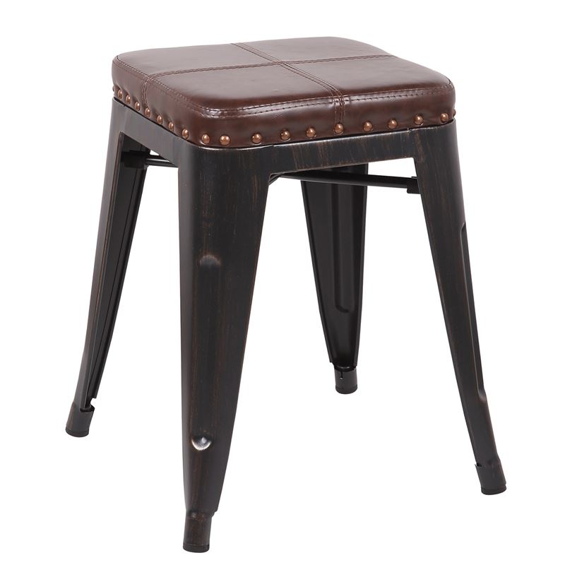 RELIX Σκαμπό Στοιβαζόμενο, Μέταλλο Βαφή Antique Black, Κάθισμα PU Σκούρο Καφέ-Ε5195Ρ,10-Μέταλλο/PVC - PU-1τμχ- 39x39x45cm