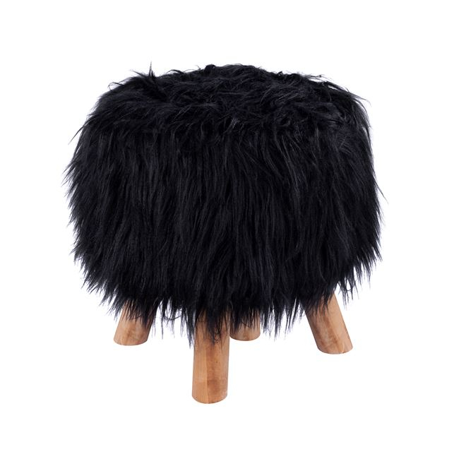 Σκαμπό BECK από γούνα σε μαύρη απόχρωση και ξύλινα πόδια σε φυσικό χρώμα. Ένα άγγιγμα κομψότητας, σε συνδυασμό με αμέτρητες χρωματικές παραλλαγές και σχήματα. Διαστάσεις: Φ32x36Υ εκ. Πόδια: 26 εκ. Πόδια διαγώνια: 35 εκ.
