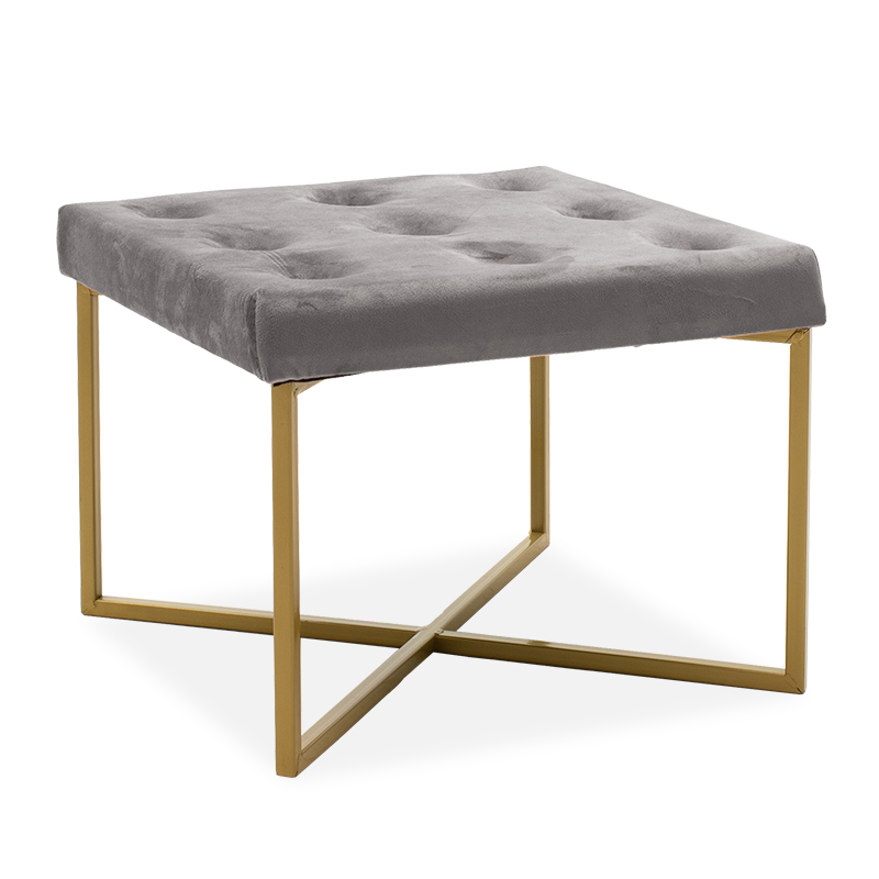 Σκαμπό Luisa pakoworld μεταλλικό χρυσό-βελούδο γκρι 40x40x30εκ