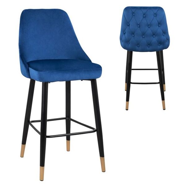 Το σκαμπό SERENITY είναι επενδυμένο με ύφασμα βελούδο σε μπλε απόχρωση με μεταλλικό σκελετό σε μαύρη ματ απόχρωση και χρυσές λεπτομερείς. Η πλάτη του σκαμπό είναι επενδεδυμένη με υπέροχο καπιτονέ σχέδιο. Επιλέξτε μοντέρνα σκαμπό που δίνουν στο χώρο σας μια διαφορετική νότα. Ένα άγγιγμα κομψότητας, σε συνδυασμό με αμέτρητες χρωματικές παραλλαγές και σχήματα. Το ελαφρώς λαμπερό ύφασμα με την αδιαμφισβήτητη εμφάνιση και αίσθηση δεν είναι χωρίς λόγο μια από τις ζωντανές τάσεις κατ 'εξοχήν. Η βελούδινη κάλυψη κάνει τη διαφορά! Διαστάσεις: 51x57x110 εκ. Ύψος καθίσματος: 75 εκ. Διαστάσεις καθίσματος: 48x45 εκ.