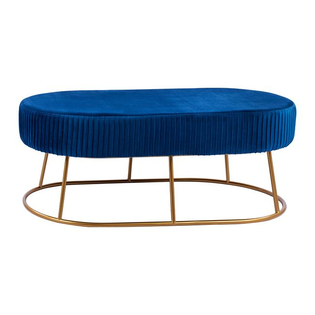 Σκαμπό παγκάκι ALINAFE από βελούδο σε μπλε απόχρωση με μεταλλική βάση σε χρυσή απόχρωση. Ένα άγγιγμα κομψότητας, σε συνδυασμό με αμέτρητες χρωματικές παραλλαγές και σχήματα. Το ελαφρώς λαμπερό ύφασμα με την αδιαμφισβήτητη εμφάνιση και αίσθηση δεν είναι χωρίς λόγο μια από τις ζωντανές τάσεις κατ 'εξοχήν. Η βελούδινη κάλυψη κάνει τη διαφορά! Διαστάσεις: 118x64x40,5Υ εκ.