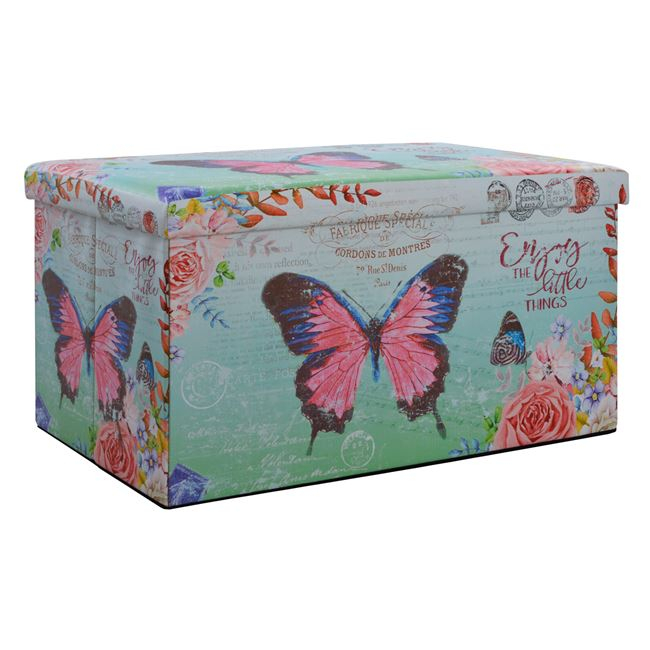 Στολίστε το χώρο και κρύψτε τα πράγματα που δεν θέλετε να φαίνονται με ένα πολύ όμορφο τρόπο. Σκαμπώ πτυσσόμενο με αποθηκευτικό χώρο επενδυμένο με τεχνόδερμα. Σχέδιο: Butterfly Διαστάσεις: 80x40x40 εκ.