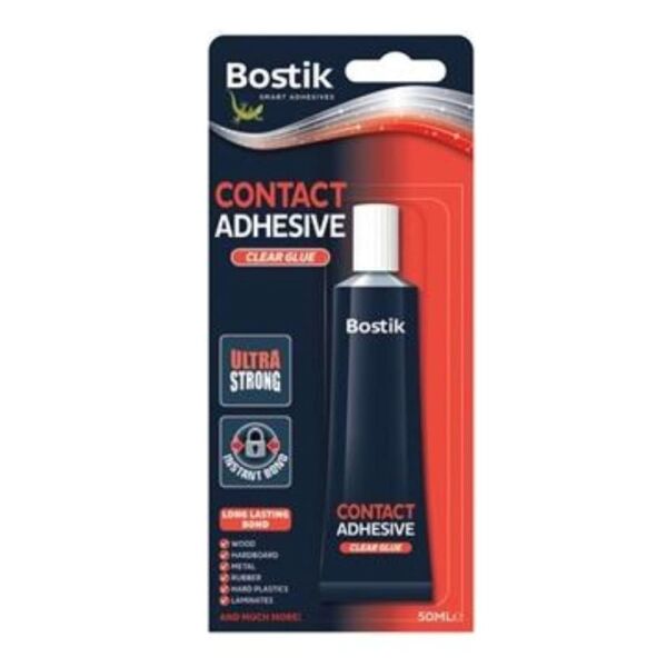 Το Bostik Contact Adhesive είναι ένα extra δυνατό, διάφανο συγκολλητικό (βενζινόκολλα) που στεγνώνει γρήγορα. Επιδιορθώνει μια μεγάλη γκάμα υλικών στη στιγμή.