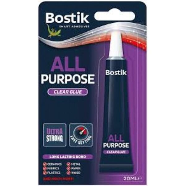 Το Bostik All Purpose είναι ένα πολύ δυνατό συγκολλητικό πολλαπλών εφαρμογών, γενικής χρήσης και γρήγορης ωρίμανσης. Στεγνώνει γρήγορα και είναι κατάλληλο για μια μεγάλη γκάμα υλικών. Ιδανικό για γενικές συγκολλήσεις στο σπίτι και το γραφείο.
