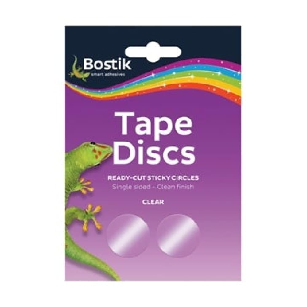 Τα Bostik Tape Discs είναι αυτοκόλλητοι διάφανοι δίσκοι διαμέτρου 25mm. Είναι ευκολότερα στη χρήση και πιο βολικά από την αυτοκόλλητη ταινία. Ξεχάστε τα ψαλίδια! Ο πιο τακτοποιημένος τρόπος για να τυλίξετε δώρα και πακέτα, να φτιάξετε κορδέλες και ετικέτες, να κλείσετε σακούλες ή φακέλους και πολλά ακόμα. Αυτοί οι χρήσιμοι διάφανοι δίσκοι των 25mm δεν περιέχουν οξύ και λιγνίνη. Δεν αφήνουν υπολείμματα ή αποχρωματίζουν την επιφάνεια και δίνουν πάντα ένα καθαρό, καλοφτιαγμένο αποτέλεσμα.