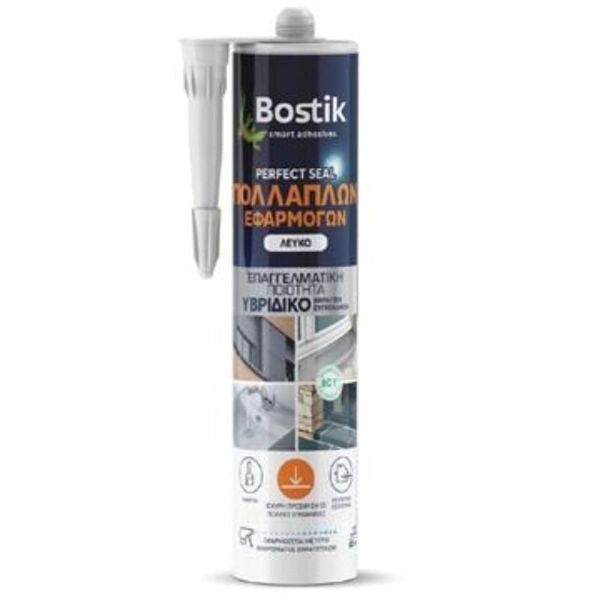 Η Bostik Perfect Seal Πολλαπλών Εφαρμογών είναι ένα «All-In-One» σφραγιστικό-συγκολλητικό MS-Polymer με εξαιρετική πρόσφυση στις περισσότερες επιφάνειες χωρίς τη χρήση ασταριού. Άοσμο και φιλικό για το χρήστη. Σχεδιασμένο για πολλαπλές εφαρμογές. Μεγάλη αντοχή στις υπεριώδεις ακτίνες, το νερό, την υγρασία, τη μούχλα κλπ. Εφαρμόζεται και σε υγρές επιφάνειες. Βάφεται με χρώματα ενός και δύο συστατικών.