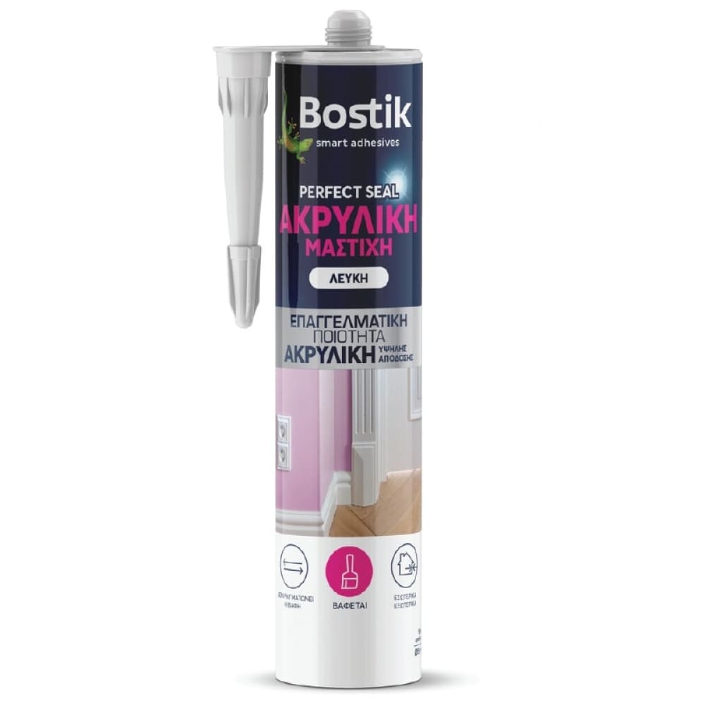 Η Bostik Perfect Seal Ακρυλική Μαστίχη είναι ενός συστατικού επαγγελματικό σφραγιστικό υψηλής ποιότητας με βάση ακρυλικές ρητίνες. Μετά την ωρίμανση της σχηματίζει ένα πλαστο-ελαστικό σφραγιστικό με πολύ καλή πρόσφυση σε πορώδη υλικά. Βάφεται με πλαστικά και ακρυλικά χρώματα. Μπορεί να απορροφήσει έως 7,5% κινητικότητα αρμού. Δεν επηρεάζει ευαίσθητες επιφάνειες.