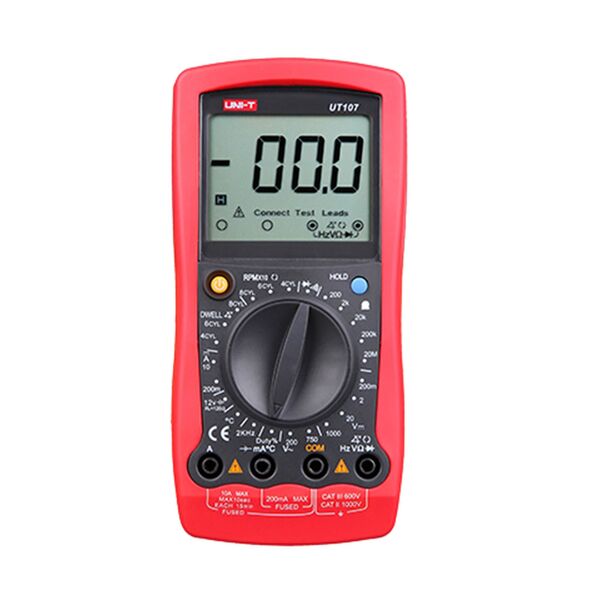 UT-107RΩ : 200Ω/2kΩ/20kΩ/200kΩ/20MΩ ±(0.8%+5)DCV : 200mV/2V/20V/1000V ±(0.8%+2)ACV : 200V/750V ±(0.8%+5)DCA: 200mA/10A ±(1.2%+5)FREQUENCY: 2 KHz ±(2%+5)Μέτρηση γωνίας Dwell σε κινητήρες χωρίς ECU, 4CYL. 6CYL, 8CYL ακρίβεια 0.1μοίρας ±(3%+5)Μέτρηση θερμοκρασίας : -40 έως 1000C ±(5%+5)ΨΗΦΙΑ 3.1/2 , ΟΘΟΝΗ 53 x 28 χιλ, ΜΕΓ.ΕΝΔΕΙΞΗ 1999,DIODE, DATA HOLD, LOW, ΤΕΤΡΑΓΩΝΙΚΟΣ ΠΑΛΜΟΣ,Battery test: 1.5V/9V/12V LCD ένδειξη μπαταρίας ‘good’, ‘low’, and ‘bad’Auto power off, Auto backlight off, Ηχητική ένδειξη με buzzerΤροφοδοσία : Μπαταρία 9V (6F22)Βάρος 380γρ.(με μπαταρία)Δ: 179x88x39χιλ