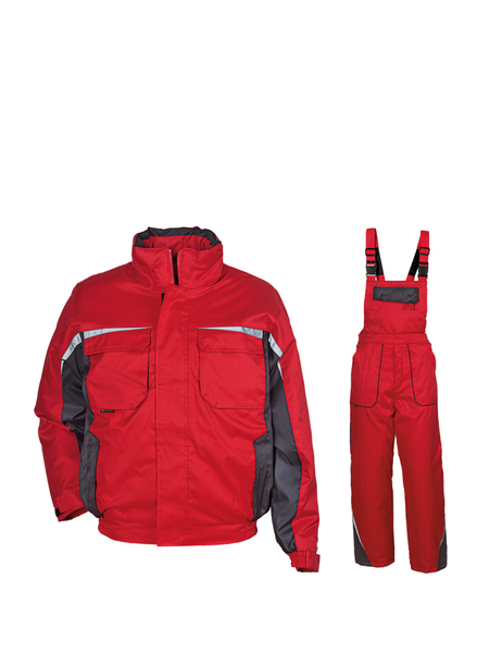 Kastor Set Red. Θερμαντικό αδιάβροχο χειμερινό σετ ψύχους, μπουφάν και φόρμα με τιράντα. Για εξωτερική εργασία και χρήση σε παγωμένο περιβάλλον έως -45 °C. Με ενσωματωμένη κουκούλα στον γιακά. Μπουφάν με ευρύχωρες τσέπες, ανακλαστικές λεπτομέρειες και κλείσιμο με φερμουάρ και χρατς. Φόρμα με ρυθμιζόμενη φαρδιά τιράντα. Σύνθεση: Polyester/polyurethane. Χρώμα : Κόκκινο . Πιστοποίηση : EN342