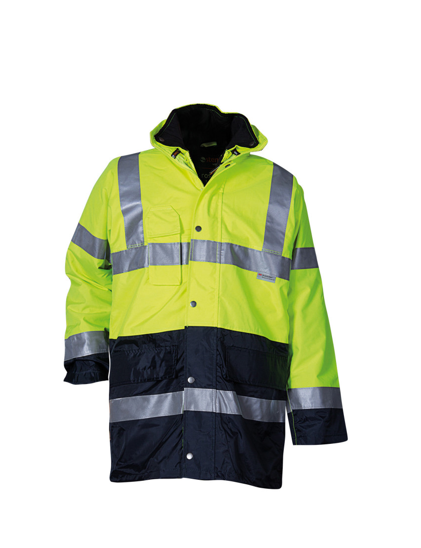 Paros 3 in 1 Yellow. Αδιάβροχο και αντιανεμικό παρκά ψύχους υψηλής ορατότητας με δυνατότητα μετατροπής σε γιλέκο και αφαίρεση εσωτερικής επένδυσης για ήπιες κλιματολογικές συνθήκες. Κουκούλα αποσπώμενη. Μανσέτες ελαστικές πλεκτές. Με ανακλαστικές ρίγες 3Μ. Εξωτερικό μέρος: 100%πολυέστερ με αδιαβροχοποίηση. Εσωτερικό μέρος : Αποσπώμενο ύφασμα βαμβάκι-πολυέστερ. Επένδυση : 100%πολυέστερ με φόδρα βαμβάκι-πολυέστερ. Πιστοποίηση: EN ISO:13688 & EN 342
