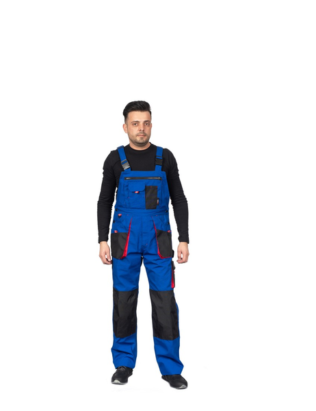 Emerton Bib Pants RoyalBlue. Άνετη φόρμα εργασίας με πολλαπλές τσέπες, κατάλληλη για διάφορες εργασίες εσωτερικού ή εξωτερικού χώρου. Από ανθεκτικό ύφασμα 65%πολυέστερ 35%βαμβάκι 260gr/m2. Με διπλή ενίσχυση στα γόνατα. Τσέπες πολλαπλών χρήσεων. Θέση για σφυρί. Ρυθμιζόμενες τιράντες και μέση. Χρώμα: Μπλέ Ρουά .