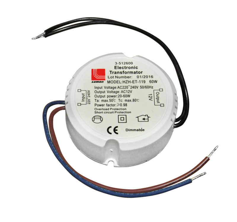 Ηλεκτρονικός Μετασχηματιστής Στρογγυλός Ντιμαριζόμενος 230/12VAC 20-60W 3-512600 Adeleq