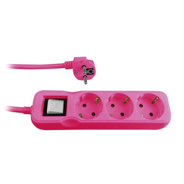 Πολύμπριζο Σούκο Ροζ Τριών Θέσεων με διακόπτη, Καλώδιο Λευκό 1,5m, Sigma 00712