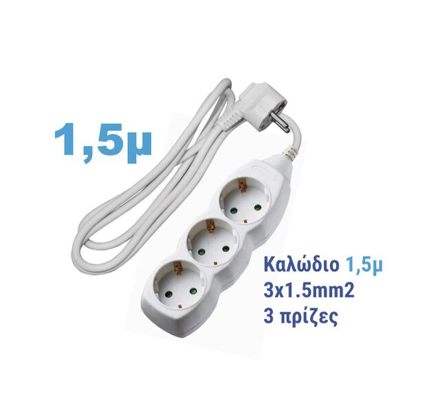 Πολύπριζο 3 Θέσεων Σούκο Με Καλώδιο 3x1.5mm² 1.5μ