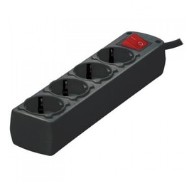 Πολύπριζο 4 θέσεις με Καλώδιο 3x1.5 1.5m και Διακόπτη Μαύρο