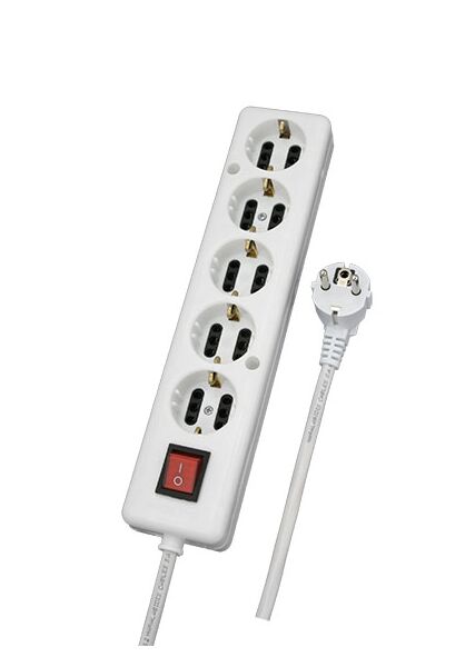 Πολύπριζο 5 Θέσεων Σούκο Ευθύ Με Καλώδιο 3χ1mm² 1,8μ Και Διακόπτη