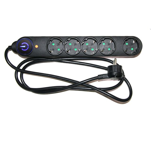 Πολύπριζο Αντικεραυνικό 5 Θέσεων Διακόπτη Με Καλώδιο 3Χ1.5mm 1.5m Μαύρο