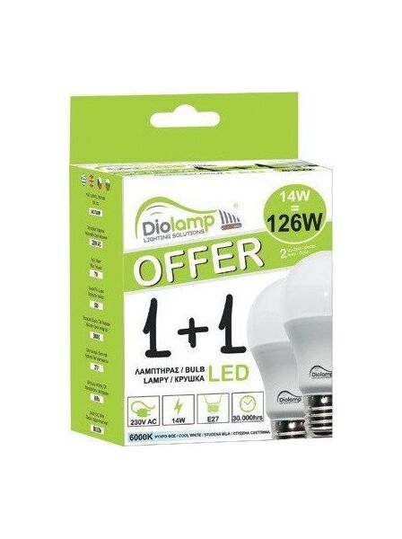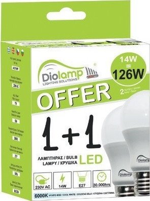Λαμπτήρας Led A60 E27 10w 810lm 3000K Warm White 2 τμχ. 1+1 Duo pack Diolamp A6010WWP