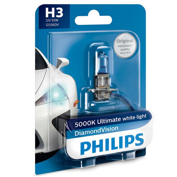 Οι λάμπες Philips Diamond Vision προσφέρουν στα 5.000°Κ, φως με μία απαλή μπλε απόχρωση, παρόμοιο με αυτό των HID Xenon KIT. Έχουν την ίδια κατανάλωση με τις κοινές λάμπες και πάντα με την ΟΕ ποιότητα. Μία μπλε αντανάκλαση παραμένει στο φανάρι ακόμα και όταν οι λάμπες είναι απενεργοποιημένες.