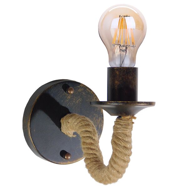 GloboStar® DAKER 01184 Vintage Φωτιστικό Τοίχου Απλίκα Μονόφωτο Μαύρο Μεταλλικό Με Μπεζ Σχοινί Μ21 x Π12 x Υ16cm