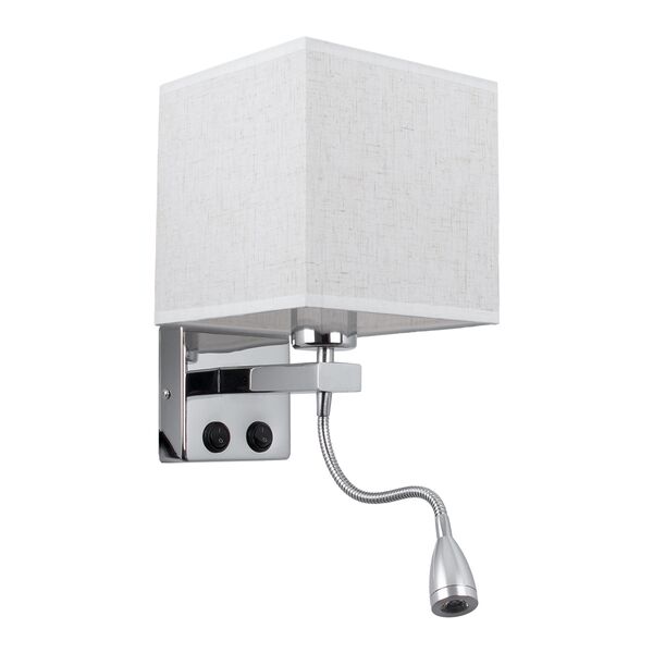 GloboStar® ELEGANT 01495 Μοντέρνο Φωτιστικό Τοίχου Απλίκα Μεταλλικό Χρώμιο Νίκελ με Λευκό Ύφασμα Δίφωτο 1xE27 - Ρυθμίζόμενο Σώμα Σπιράλ με CREE LED 3W Θερμό Λευκό 2700K - Διακόπτες On / Off Μ17 x Π21 x Υ43cm