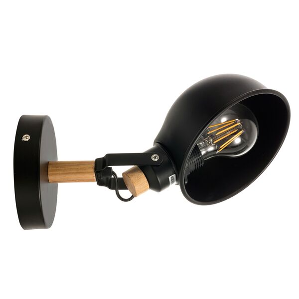 Πρόκειται για ένα μίνιμαλ επιτοίχιο φωτιστικό κατασκευασμένο από μαύρο μέταλλο και ξύλινο σταθερό βραχίονα. Το μπροστινό μέρος μπορεί να πάρει την επιθυμητή για τον κάθε χώρο κλίση. Δέχεται ένα λαμπτήρα με βά