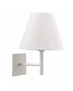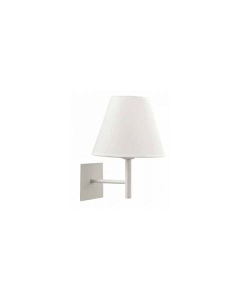 Πρόκειται για ένα επιτοίχιο μεταλλικό φωτιστικό σε λευκή απόχρωση και μίνιμαλ σχεδίαση. Το υφασμάτινο λευκό καπέλο συμπληρώνει την εικόνα του δίνοντας έναν πιο απαλό φωτισμό. Δέχεται ένα λαμπτήρα με βάσ
