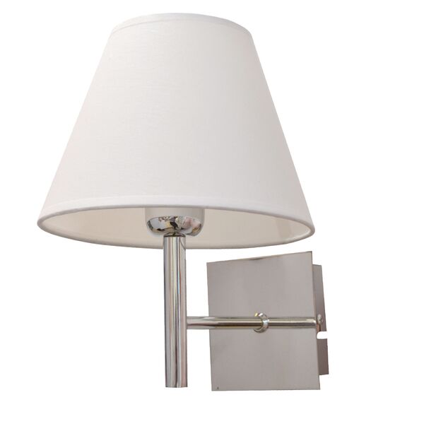 Πρόκειται για ένα επιτοίχιο μεταλλικό φωτιστικό σε χρώμιο απόχρωση και μίνιμαλ σχεδίαση. Το υφασμάτινο λευκό καπέλο συμπληρώνει την εικόνα του δίνοντας έναν πιο απαλό φωτισμό. Δέχεται ένα λαμπτήρα με βάσ&eta