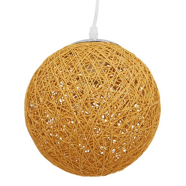 GloboStar® OCEANA 01200 Vintage Κρεμαστό Φωτιστικό Οροφής Μονόφωτο Μπεζ Ξύλινο Ψάθινο Rattan Φ20 x Υ20cm