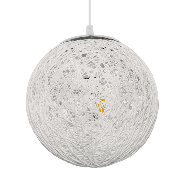 GloboStar® OCEANA 01355 Vintage Κρεμαστό Φωτιστικό Οροφής Μονόφωτο Λευκό Ξύλινο Ψάθινο Rattan Φ20 x Υ20cm