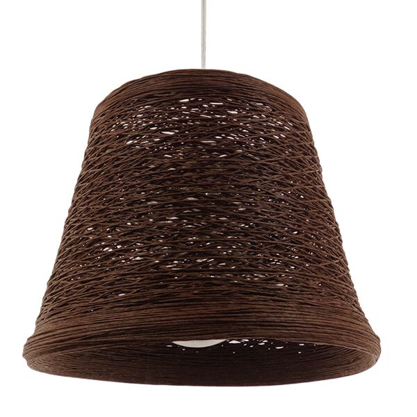 GloboStar® PLAYROOM 01333 Vintage Κρεμαστό Φωτιστικό Οροφής Μονόφωτο Καφέ Σκούρο Ξύλινο Ψάθινο Rattan Φ32 x Υ27cm