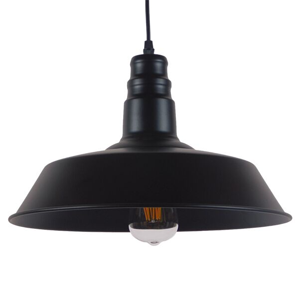 GloboStar® RAY 01049 Vintage Industrial Κρεμαστό Φωτιστικό Οροφής Μονόφωτο Μαύρο Μεταλλικό Καμπάνα Φ36 x Y25cm