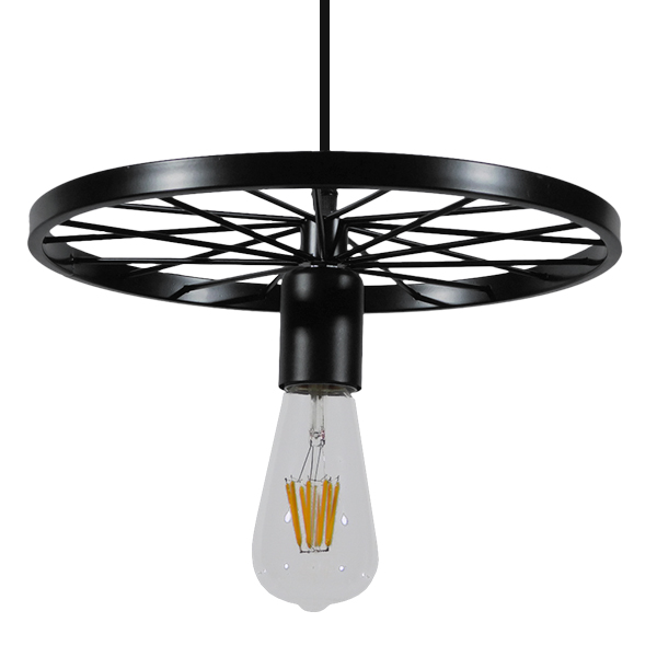GloboStar® WHEEL 01161 Vintage Industrial Κρεμαστό Φωτιστικό Οροφής Μονόφωτο Μαύρο Μεταλλικό Πλέγμα Φ30 x Y10cm