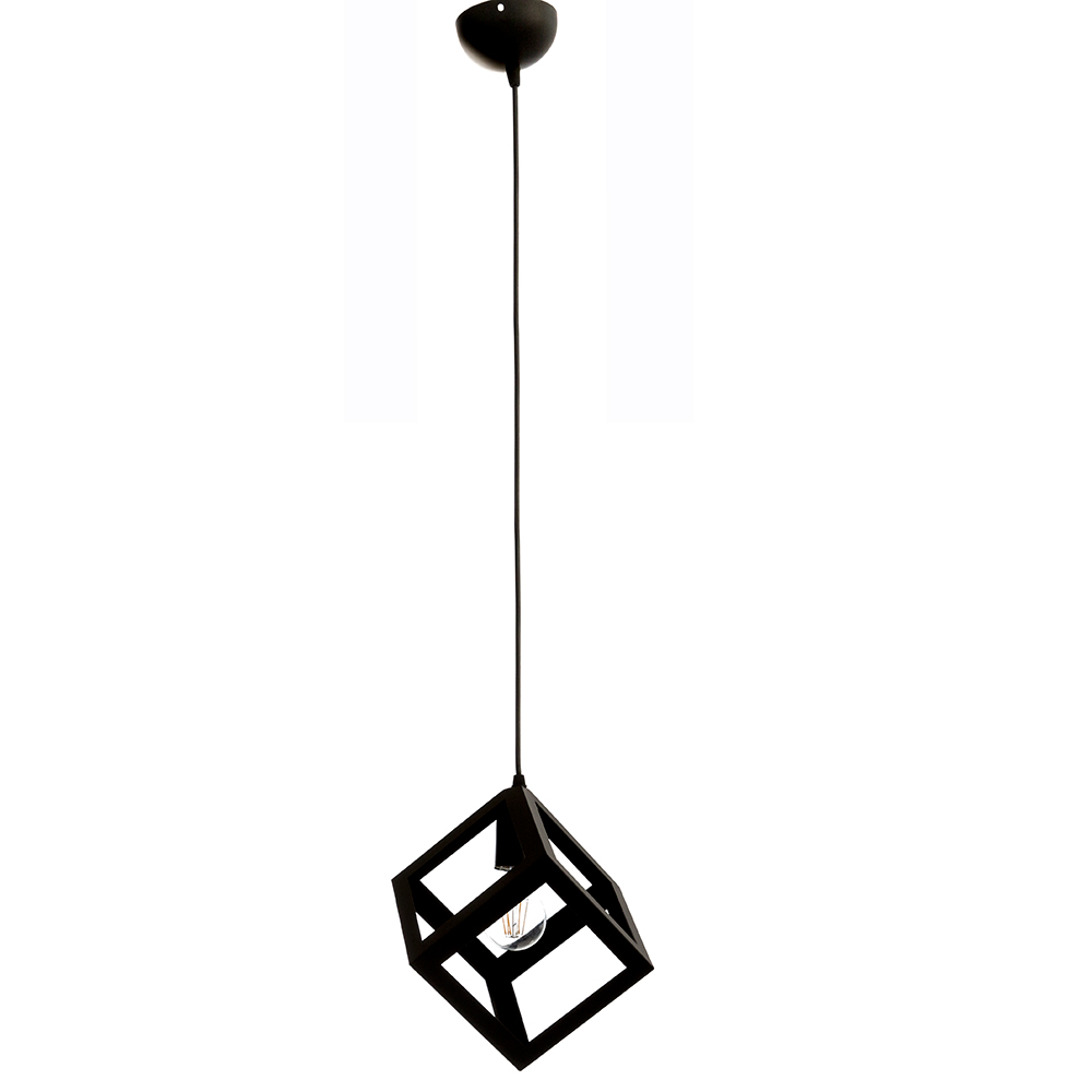 Πρόκειται για ένα μεταλλικό κρεμαστό φωτιστικό σε χρώμα μαύρο. Η μίνιμαλ γεωμετρική του σχεδίαση το τοποθετεί σε οποιονδήποτε μοντέρνο εσωτερικό χώρο. Η ανάρτησή του ρυθμίζεται για να λάβει το επιθ