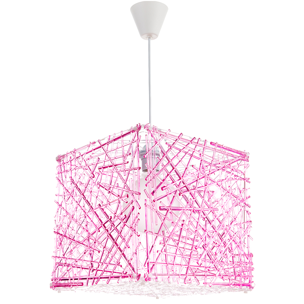 Πρόκειται για ένα κρεμαστό φωτιστικό από ροζ plexiglass και λευκή ανάρτηση. Ένας ιδιαίτερης σχεδίασης κύβος που το ύψος του προσαρμόζεται στον κάθε χώρο. Δέχεται ένα λαμπτήρα με βάση E27 και μέγιστη ισχύ 40W. Χαρακτηρι&sig