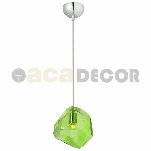 Φωτιστικό Κρεμαστό Γυάλινο "Πετράδι" Πράσινο / Ντουί Μέταλλο σε Χρώμιο ACA V351891PGR