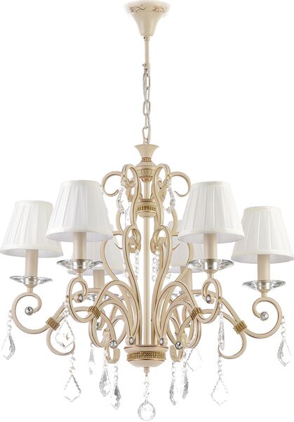 Πολυέλαιος Χειροποίητος Μπεζ Οκτάφωτος με αμπαζούρ Εκρού & Κρυστάλλινες Λεπτομέρειες Inlight 5276-8