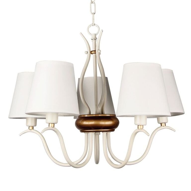 Πολυέλαιος Πεντάφωτος Μέταλλο Κρεμ με Υφασμάτινο Ανοιχτό Μπεζ Καπέλο & Αντικέ Χρυσές λεπτομέρειες ACA FMD32475