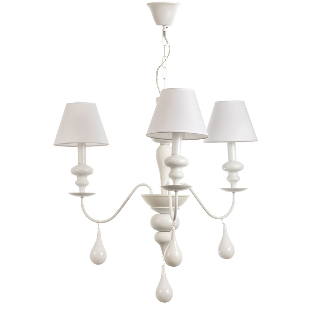 Πολυέλαιος Τρίφωτος Λευκό Μέταλλο, Δάκρυ Λευκό Φυσητό Γυαλί & Λευκό Αμπαζούρ Inlight 5295-3