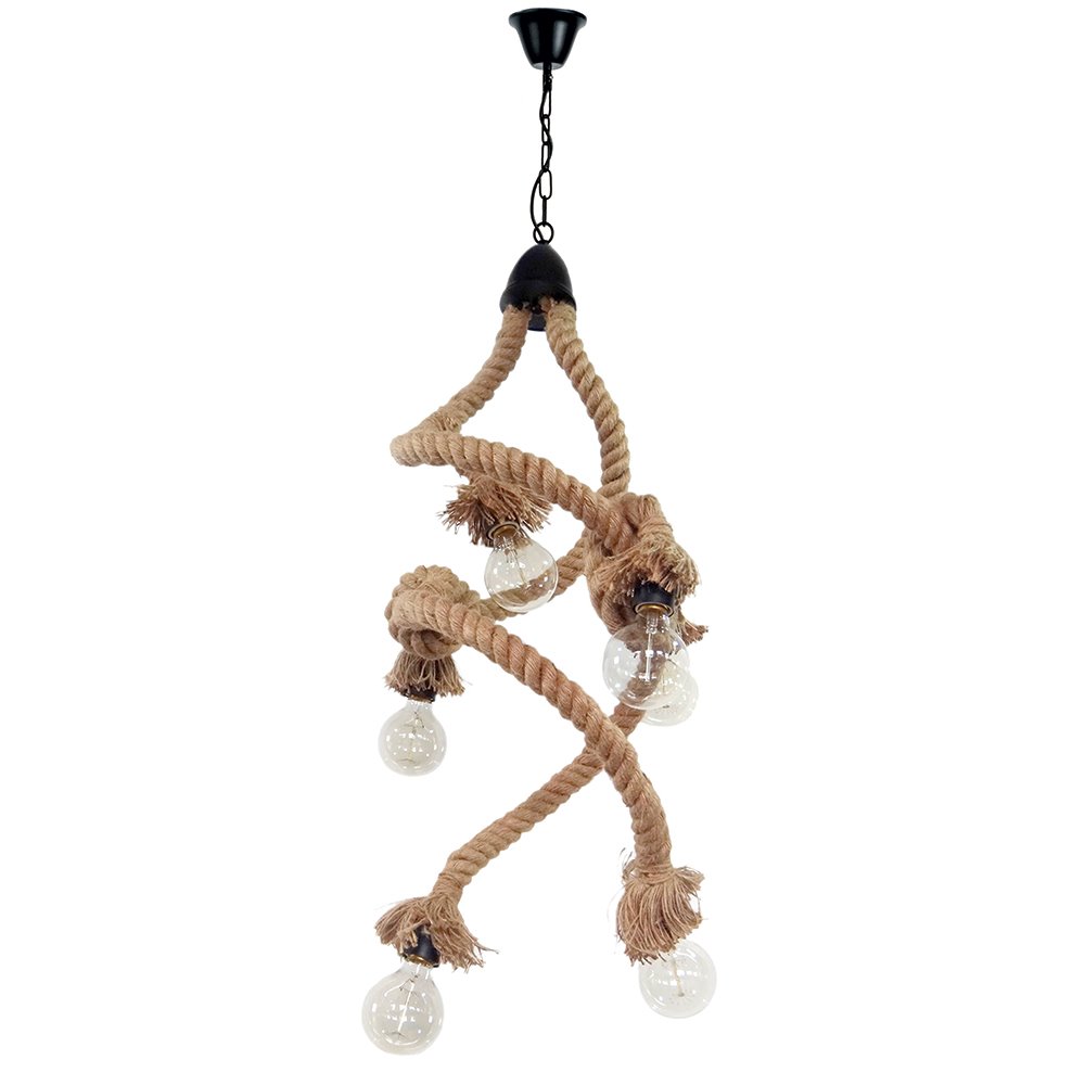 Φωτιστικό Vintage Κρεμαστός Πολυέλαιος Εξάφωτος Σχοινί Inlight 4383-6