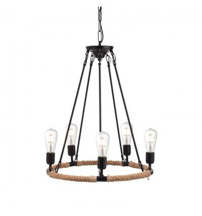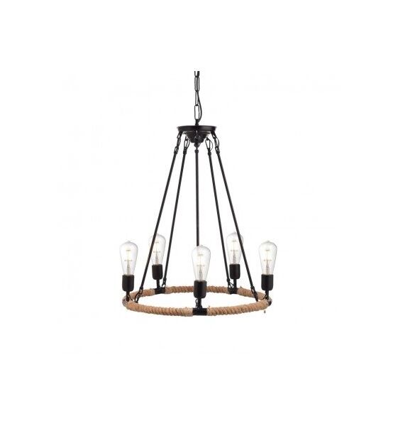 Φωτιστικό Vintage Πολυέλαιος Πεντάφωτος Μέταλλο Μαύρο Ματ / Σχοινί ACA 853505PBR